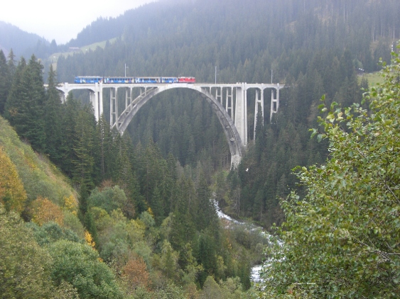 Arosa-Express # 1445 Richtung Arosa, geführt von Ge 4/4 II 629 auf dem Langwieser Viadukt; 06.10.07