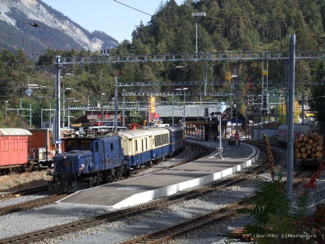 Ge 6/6 I 412 mit Zug # 2230 Alpine Classic Glacier Express bei der Ausfahrt aus Reichenau - Tamins; 05.10.07