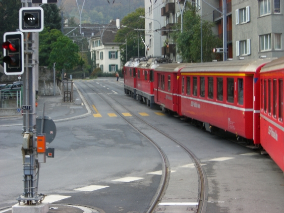 Ge 4/4 II Doppeltraktion mit Zug # 1429 nach Arosa kurz nach der Abfahrt in Chur; 06.10.07